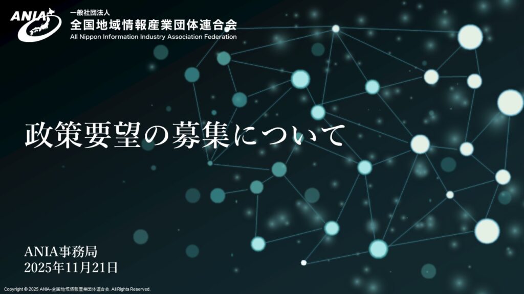 【お知らせ】2025年度 ANIA政策要望を公開しました